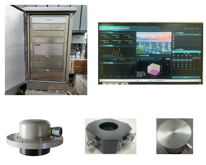 变压器局部放电在线监测系统主要由超高频传感器、高频传感器、超声波传感器、、局放分析装置、现场综合监控柜、局放数据库软件、服务器等组成。